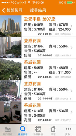 2、樓盤搜尋:用戶可按多個不同條件搜尋合適樓盤 ;