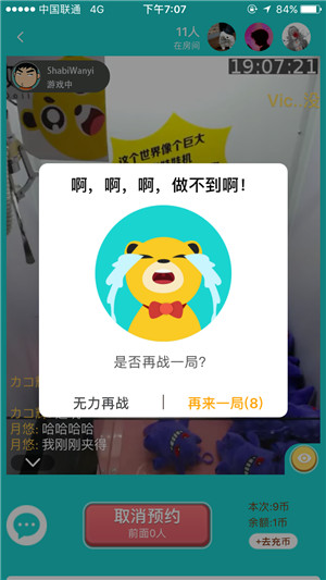 我们还创造性地加入了直播元素!如果您允许开放前置摄像头及麦克风权限,就可以边玩边和围观群众谈笑风生!如果害羞,也可以残忍拒绝!