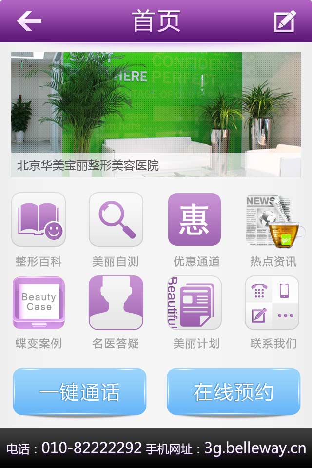 华美宝丽整形是专为爱美女性打造的整形美容前沿资讯的生活助手软件,是集整形美容常识、最新疑问、行业动态及美学测试为一体的专业咨询交流平台。北京京日友好医院、北医三院等三甲整形博士等业内权威整形美容大师长期在线,随时随地为用户提供最全面最专业的整形咨询。软件还提供了在线预约和医疗导航等模块,可随时查看和预约。下载到手机上,就能随时随地关注时尚整形美容信息。