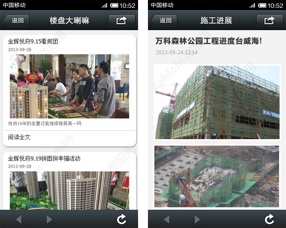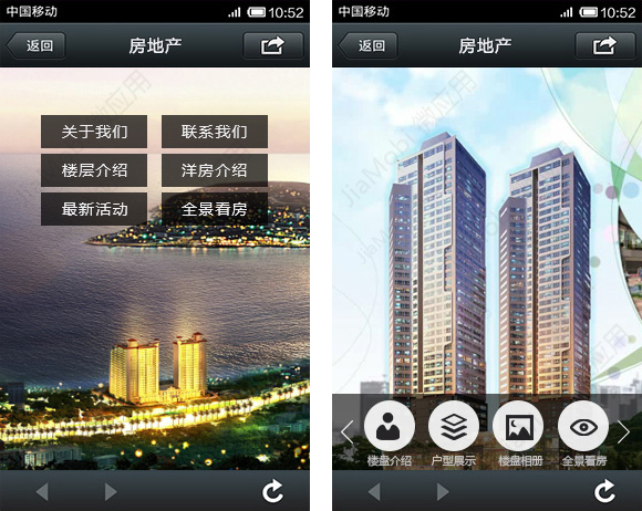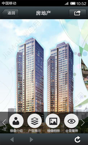 楼盘的微官网,直接把房子在手机端展示出现,让潜在客户随时了解至楼盘情况。更是一个掌上楼盘入口,比传统的折页宣传更直接有效。