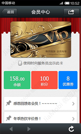 每一次的会员消费都产生积分;积分可以在线兑换礼品,还可以在下次消费时直接抵现;利用积分建立用户粘性。
