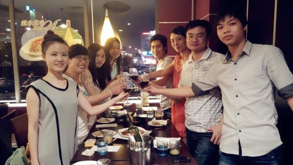 我们举杯同庆,举杯共饮,红酒、披萨、培根面……聚餐时间,我们不分彼此、不分级别,共坐一台桌,其乐融融。