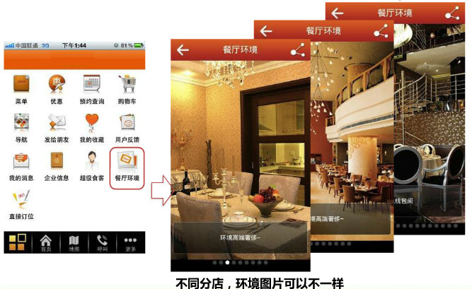 广州APP开发公司91直播 针对餐饮手机客户端定制的解决方案第一特点:不同分店,环境图片不一样第二特点:不用点菜,直接手机在线,预定座位第三特点:开车,开会,休闲时间准可一键提前选菜。