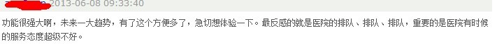 有网友称:APP开发应用功能很强大啊,是未来一大趋势,有了APP应用方便多了,急切想体验一下。因为最反感的就是医院的排队、排队、排队,重要的是医院有时候的服务态度超级不好。