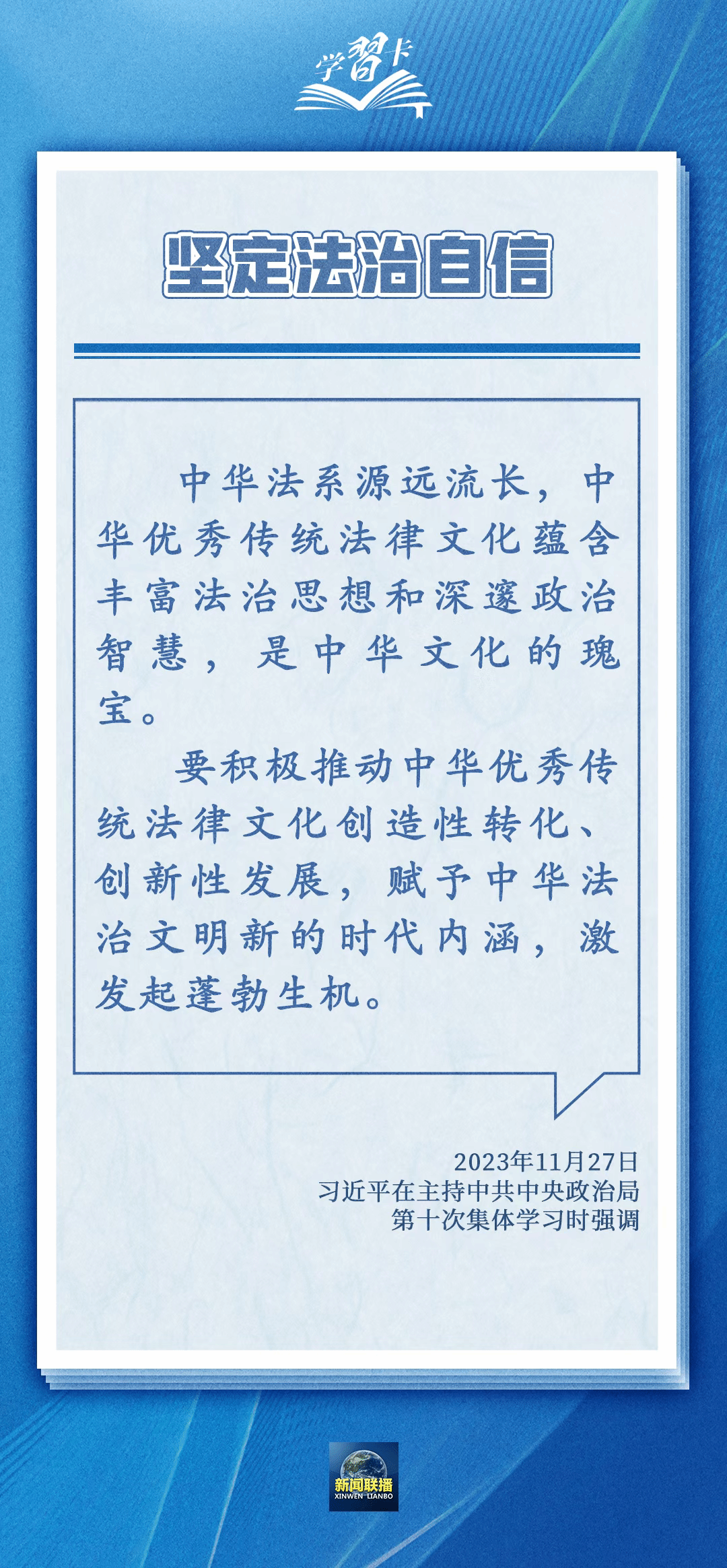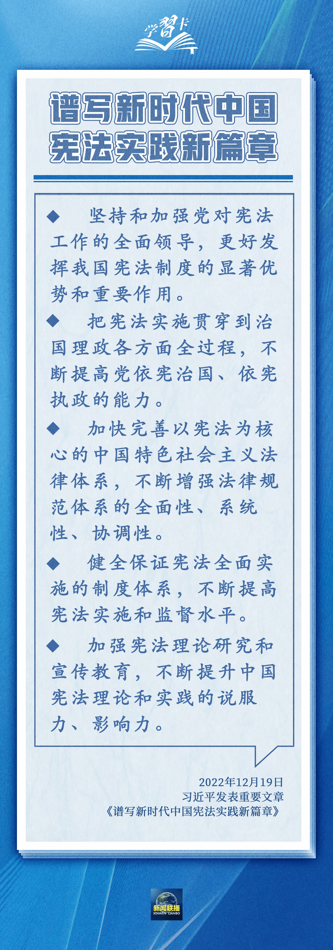 围绕依宪治国、依宪执政,习近平总书记多次在不同场合强调,宪法是党和人民意志的集中体现,丰富和发展了中国特色社会主义法治理论,也为推进国家治理体系和治理能力现代化指明了根本路径和努力方向。一起学习——